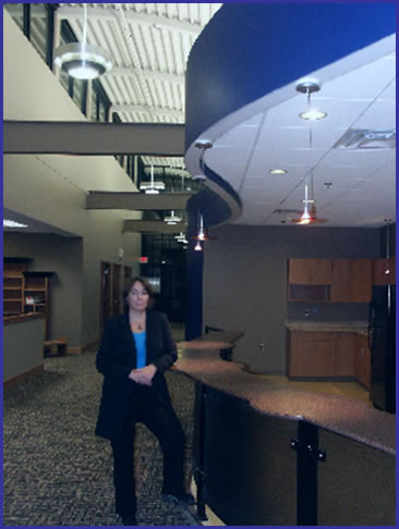 Flow-Rite Controls is an office/manufacturing facility in Byron Center, Michigan. I was the sole interior designer. My responsibilities included concept and floor plan development, lighting plan consultant with some fixture specification, millwork design and specification, custom café rail design, flooring specification, display design, exterior color selection, interior paint and finish selection as well as furniture plan and specification. I encouraged my client to consider a variety of sustainable design solutions.